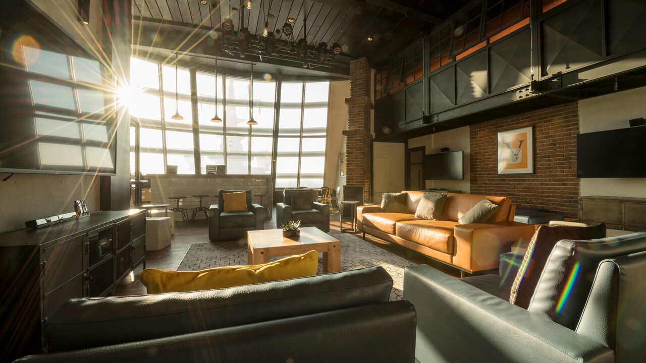 Adolescentes de 14 a 17 anos vão relaxar e curtir música, TV e jogos interativos neste elegante loft em estilo parisiense com um toque retrô, incluindo letreiros de neon vibrantes e pop art moderna.