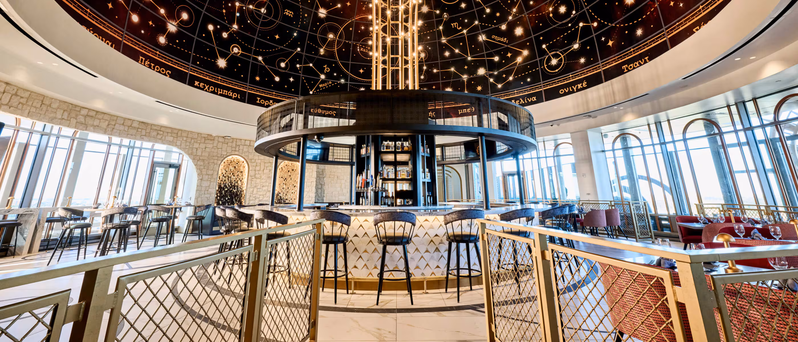 Com opções de bebidas refrescantes, comidas deliciosas e tapas criativas, o Bar Helios oferece vistas incomparáveis do Universal Epic Universe.